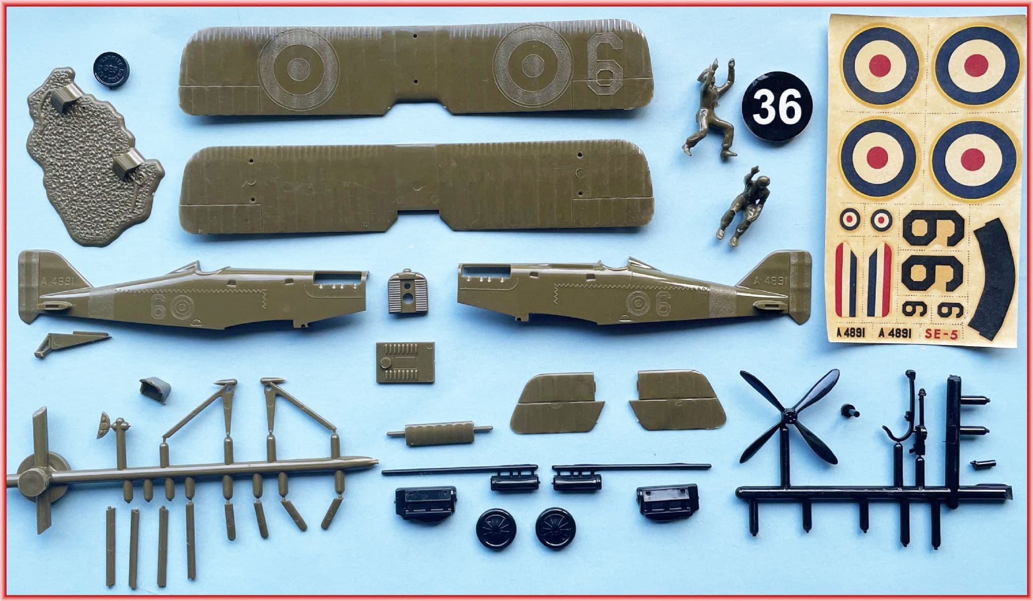 AURORA released their SE5 as part of the first Series B WWI set, one of two British fighters in the initial group and which has been copied and distributed by over two dozen manufacturers over the past seven decades and continues to this day! Our genuine first edition contains 36 parts that present a basically good-looking 1:46 scale model of an SE5A with some necessary amendments and detail additions.The content is in good condition with minor wear and tear on the colourful box-all parts are mint, and have been carefully checked. Priced at 69 cents in 1956, the kit proved extremely popular at the time and it has a very long pedigree culminating in Monogram and Revell re-issues in the late 1980s with reworked moulds and all-new decal options. These old Aurora kits were relatively easy to build by young modellers back in the day and pioneering dual-colour plastic kept painting to the barest minimum.