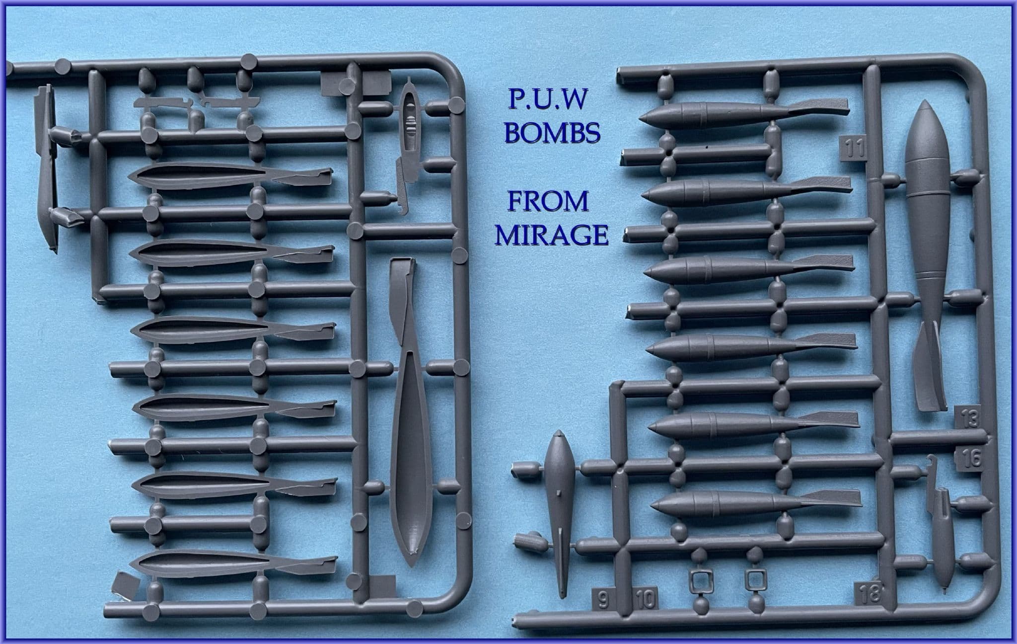 There are eight PuW bombs which fail to capture the streamlined form of the 100kg originals but excellent versions have been produced by Mirage Models of Poland and a selection of them are included with the box. Engine nacelles are the main stumbling blocks. Surface detail is confused, engine cut-outs too short and the units are parallel-sided in plan view whereas they should be wider and adopt streamlined form. Altering them would be awkward and vac-forming would be a purist's best recourse so we have provide 1:48 scale multi-aspect drawings of G.V nacelles in the kit for those willing to take the plunge...