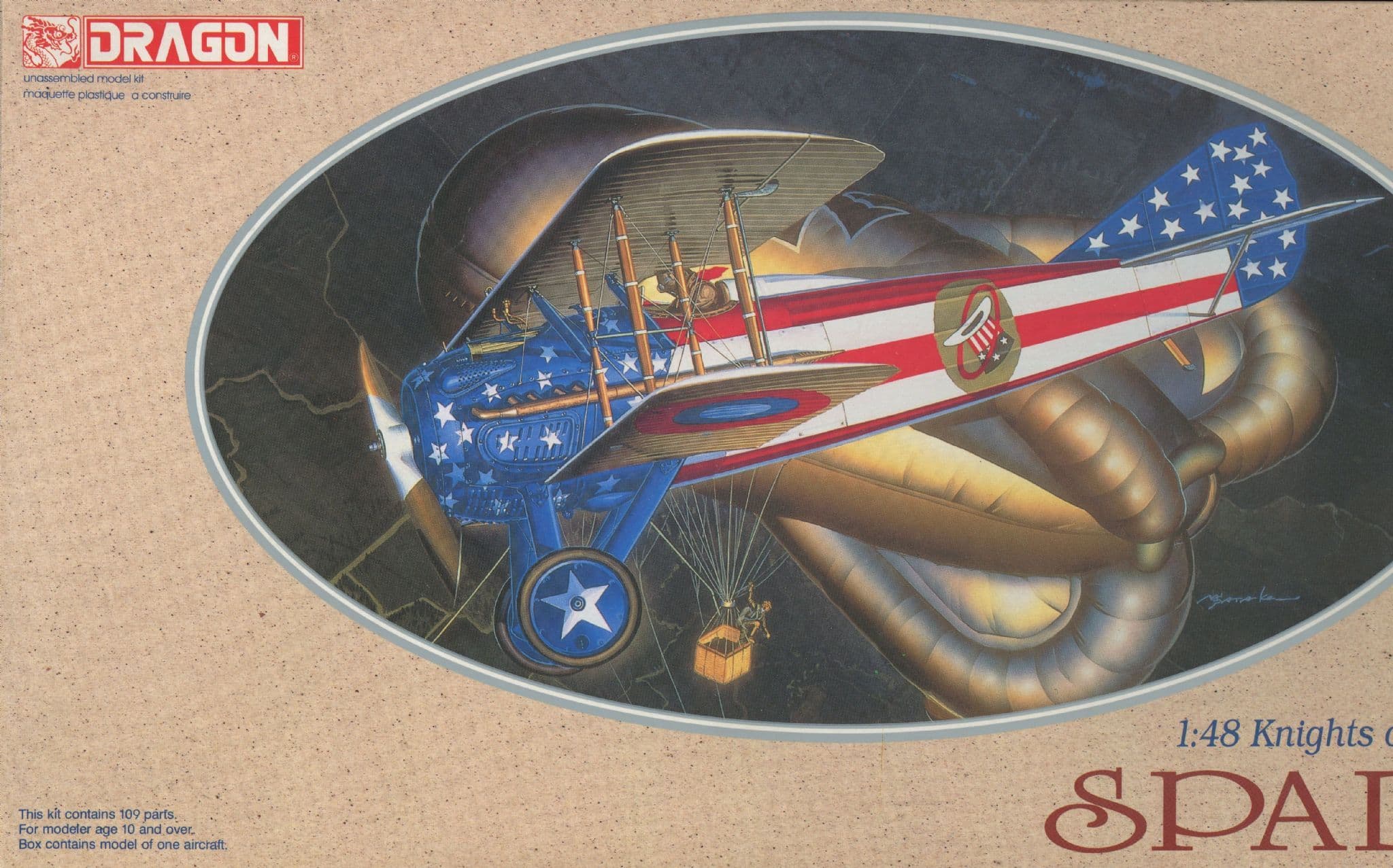 SPAD XIII by DRAGON/DML, Kit No.5902, complete with PE detail parts,rigging wire and decals for Lt. Reed-Chambers' famous 94th USAS 'Stars and Stripes Showbird' An excellent 1:48 scale kit of the classic French WWI fighter, this example is complete and in mint condition In addition, this exclusive package also includes three bonus SPAD decal packs: AeroMaster 48-075 with its two sheets of markings for 22nd and 94th AEF/USAS aircraft;a pair of French machines from SPA.48 and SPA. 65 (Nungesser) ;an Italian example from the 91e and a pair for Blue Max SPAD VII kits-a Belgian comet-marked SPAD of the 10th Esc.,and aircraft '3' from SPA.99.This crisply -printed set includes detailed instructions and camouflage layouts for all seven subjects.