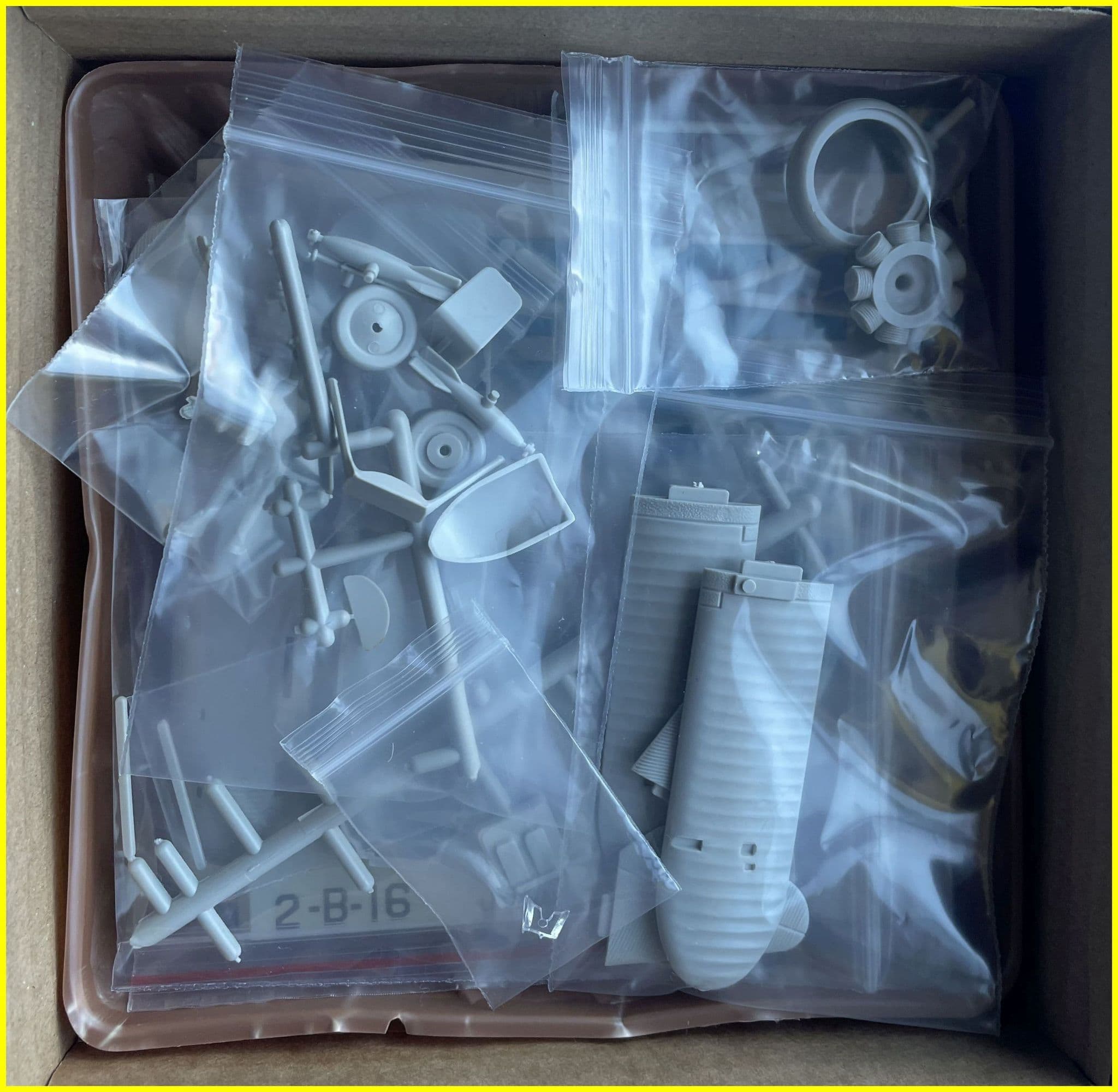 Plastic content of our example is mint with all 31 parts present and correct protected in zip-lok bags to avoid loss-many having parted ways with their runners. Decals have not faded and appear to be in good condition which is more than can be said for the box! At some point over the years it has been badly crushed and we have semi-restored it with gummed paper inserts for the lid and an entirely new tray cut and folded from stiff card. Results are not completely perfect but a great deal better than before! This particular kit (No.-1122-190) was packaged under the K & B label for distribution in the UK and Europe-those for domestic consumption mainly bear the familiar Aurora trademark.