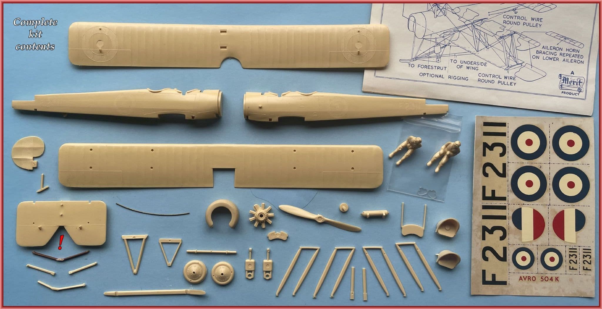 Merit always outshone Aurora with their superior instruction leaflets which often include painting notes and always helpful rigging guides. That for the Avro is particularly complex so the annotated diagrams are a real plus!