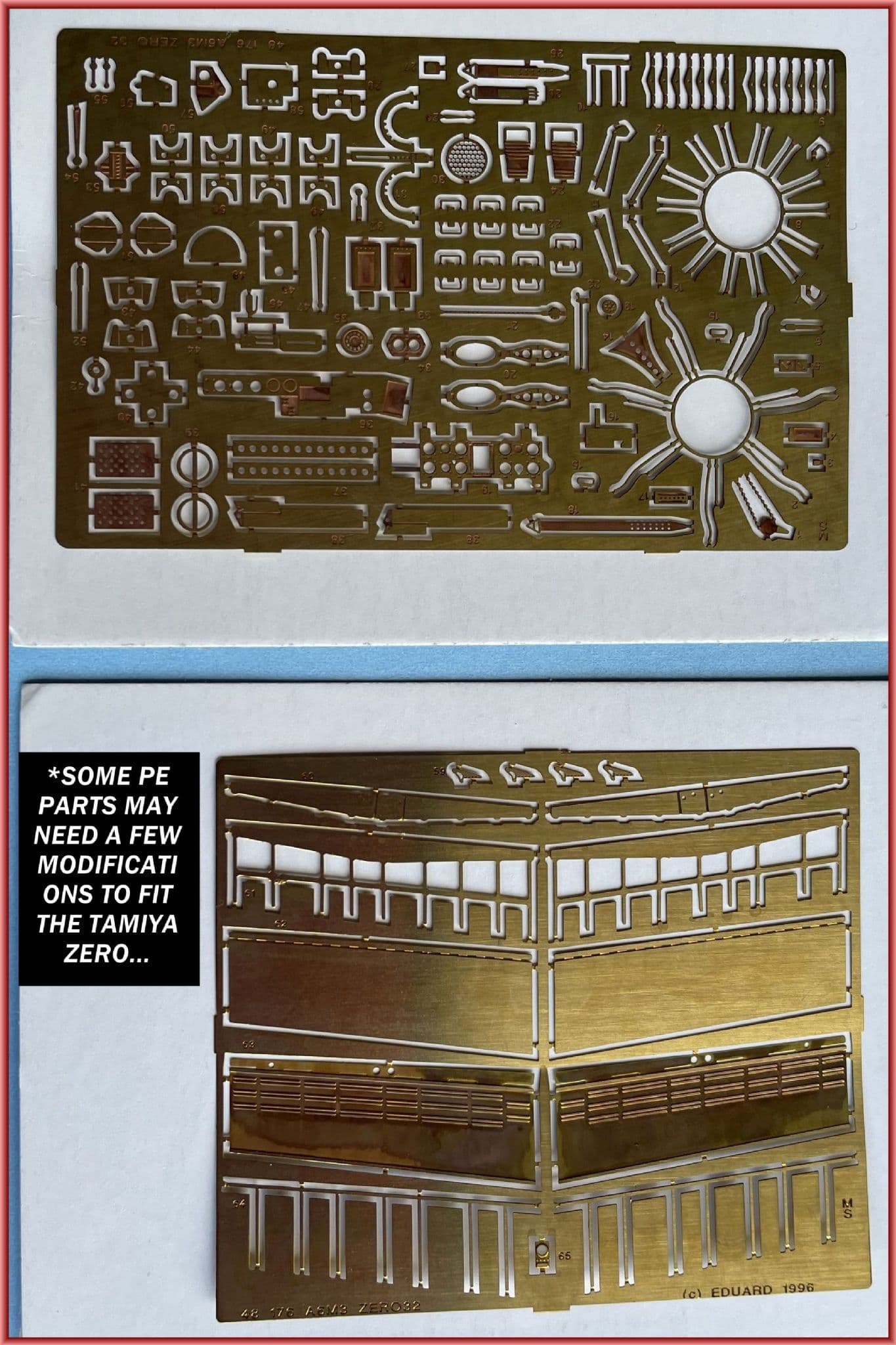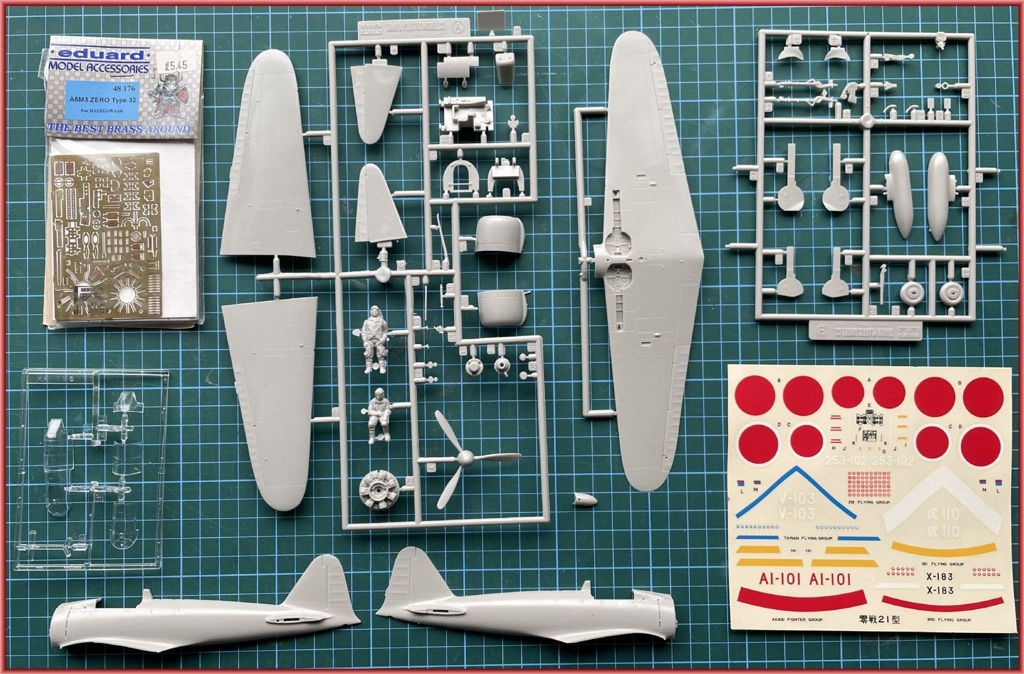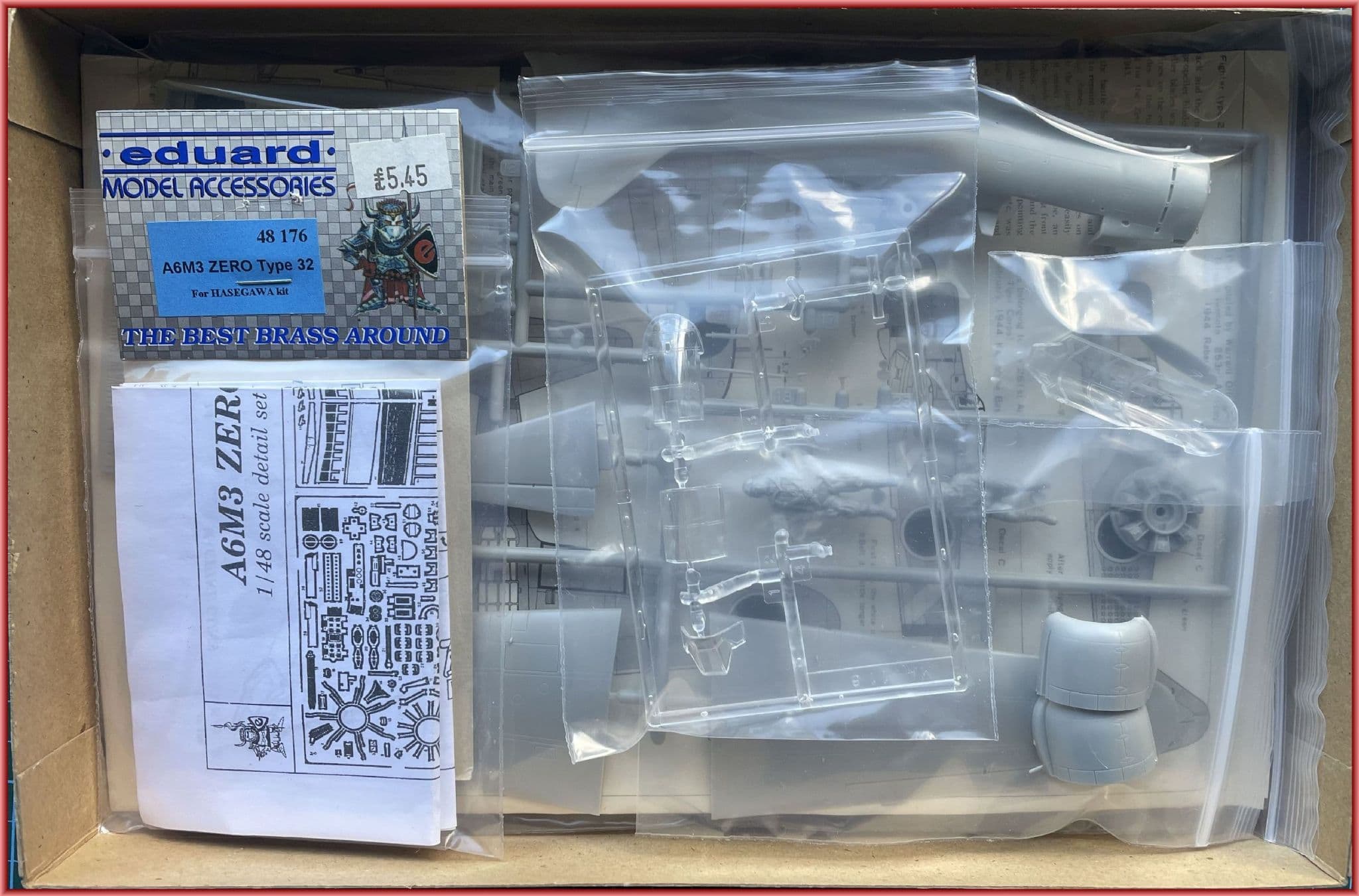 *We have added a number of bonus items inside the box: Eduard's rare PE detail set 48-176 (for the Hasegawa kit) and a pair of top notch refernece books: Profile Publications No. 129 and Squadron Signal's AM6 Zero in Action from 1983-packed with many photos, colour profiles and line drawings!