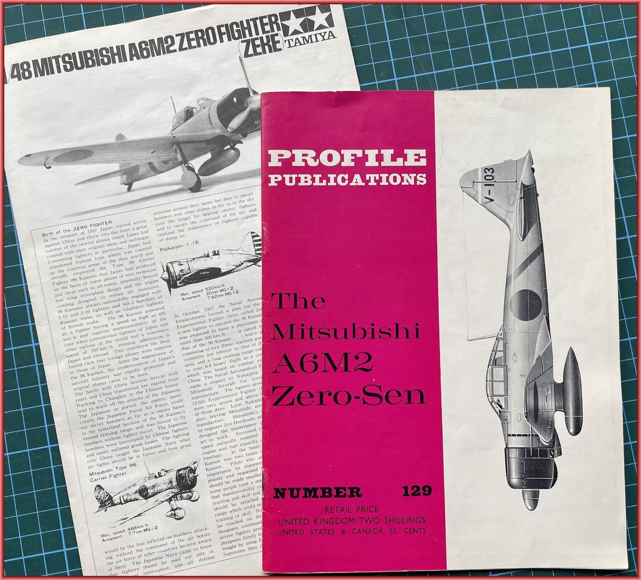 *Our kit includes some great bonus items including Eduard MA's 1996 PE sheet 49-176 designed for the Hasegawa kit but equally at home with the Tamiya model although some mods may need to be made. Also supplied in the package is Profile Publication's No.129 on The Zero-Sen by Rene J Francillion Ph.D published in 1966 and Squadron's Signal's Zero in action, the 59th of the series written by Shizera Notara and illustrated with Don Greers' fabulous colour art on covers and centre- spread. Collectively the two books feature almost 30 profiles with the Squadron title presenting over 85 separate line drawings showing many invaluable aspects of the AM6 series.