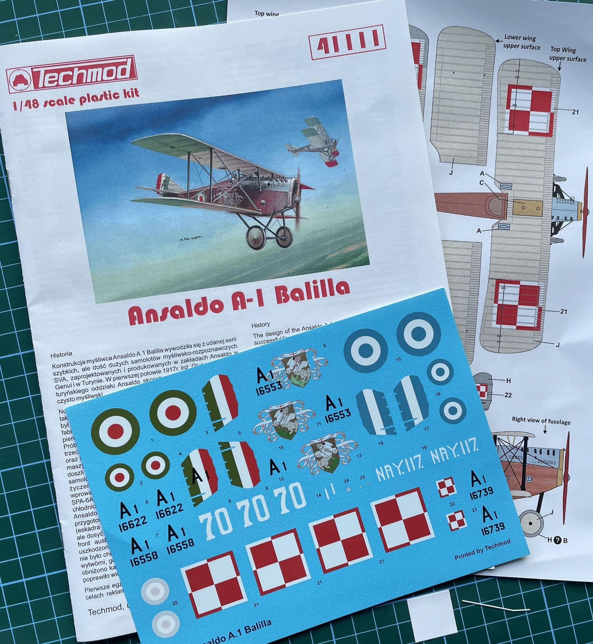 Ansaldo's Balilla is immortalized by Poland's Techmod by their stunning 1:48 scale kit combining injection-moulded plastic with 3D printed parts. The latter are superb, down to the ultra-fine matrix and emblem on the radiator front to delicate spoked wheels and a plethora of cockpit parts also. This is a mint example and provides comprehensive instruction diagrams and multi-view colour profiles illustrating the five options that are printed on a quite spectacular decal sheet. One of the finest 1:48 scale models of this classic Italian WWI fighter ever kitted.