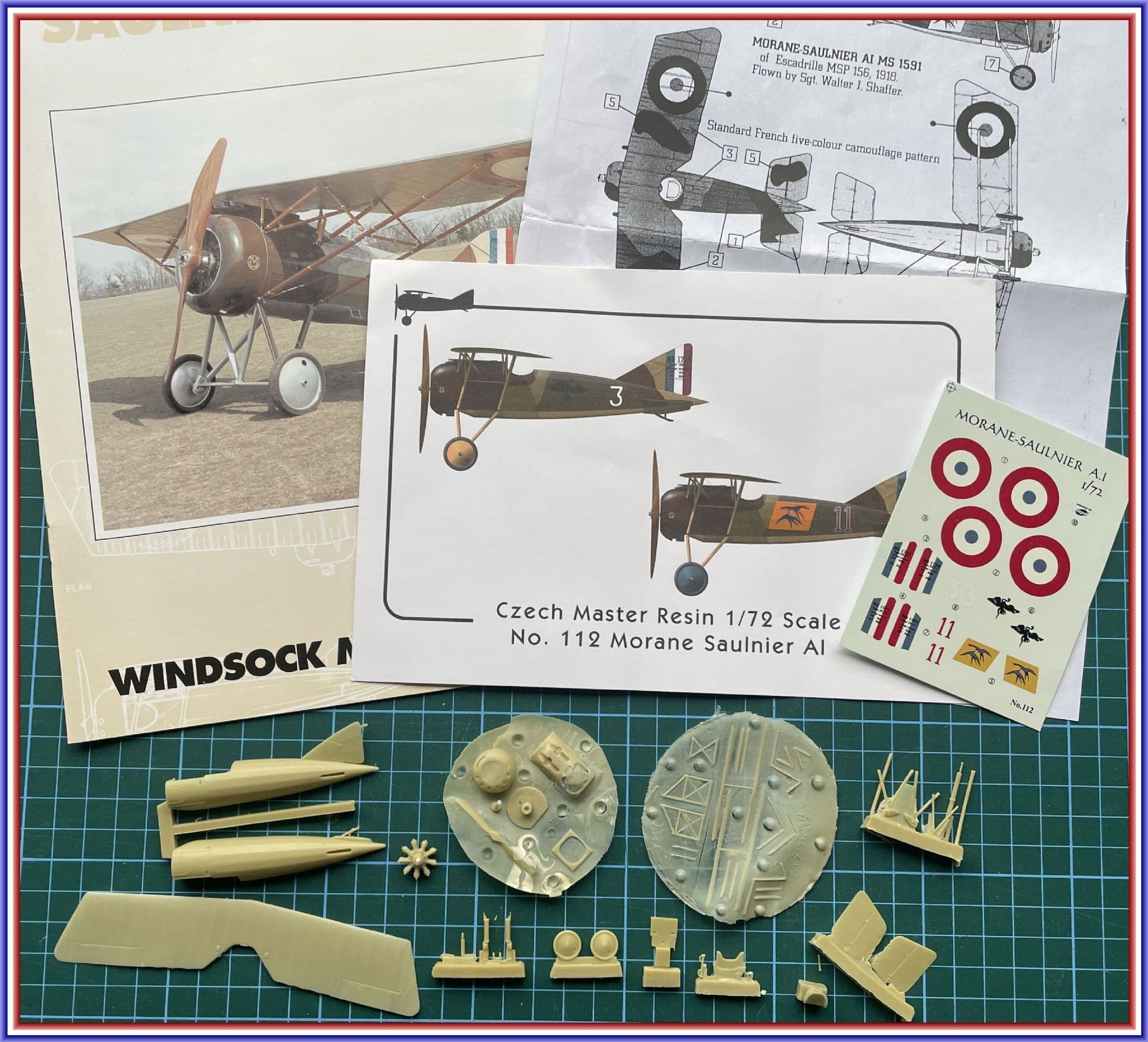 From Czech CMR, a really stunning resin kit of the 1918 French Morane Saulnier Type AI parasol monoplane, one of the first models produced of this attractive design. All parts are resinous and will demand a careful modeller to prepare the super-fine smaller pieces once removed from their delicate webs. Detail is first class, with accurate structure representation and provision for a rotating powerplant/airscrew assembly. Full instructions, colour notes and drawings plus a really high-grade decal set with two choices of decor add perfect finishing touches. Bonus items include a copy of Mini Datafile No.5 and a sheet of 1:48 scale AI decals produced by Microscale for the Copper State Models kit This is one unique package and it's only available here!