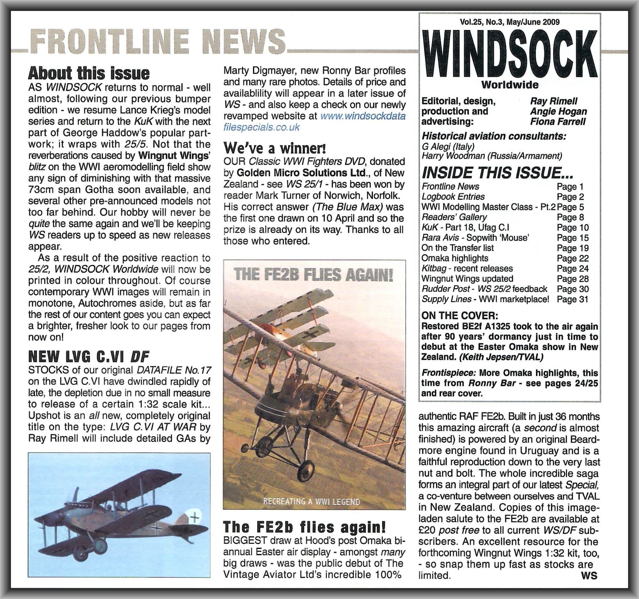 Vol.25, No.3 carries stunning images of the Omaka Easter show in New Zealand with unique coverage of the newly-restored RAF BE2f, plus Avro 504K and the new reproduction FE2b. Extended WWI book, kit and decal reviews showcase all that’s new in the field as Lance Krieg continues his series on WWI aero-modelling with a close look at workbenches and tools. George Haddow profiles the UFAG C.I (W 29) with rare photos, 1:72 scale plans and colour views from Bob Pearson; Colin Owers describes the unique Alcock ‘Mouse’ fighter with his own 1:48/1:72 drawings; new kits from CSM, Special Hobby, Roden and Eduard are also assessed. Fans of Wingnut Wings are not forgotten as we exclusively reveal five more amazing WWI kits currently under development! All this and more in this great collectors' ALL COLOUR edition!