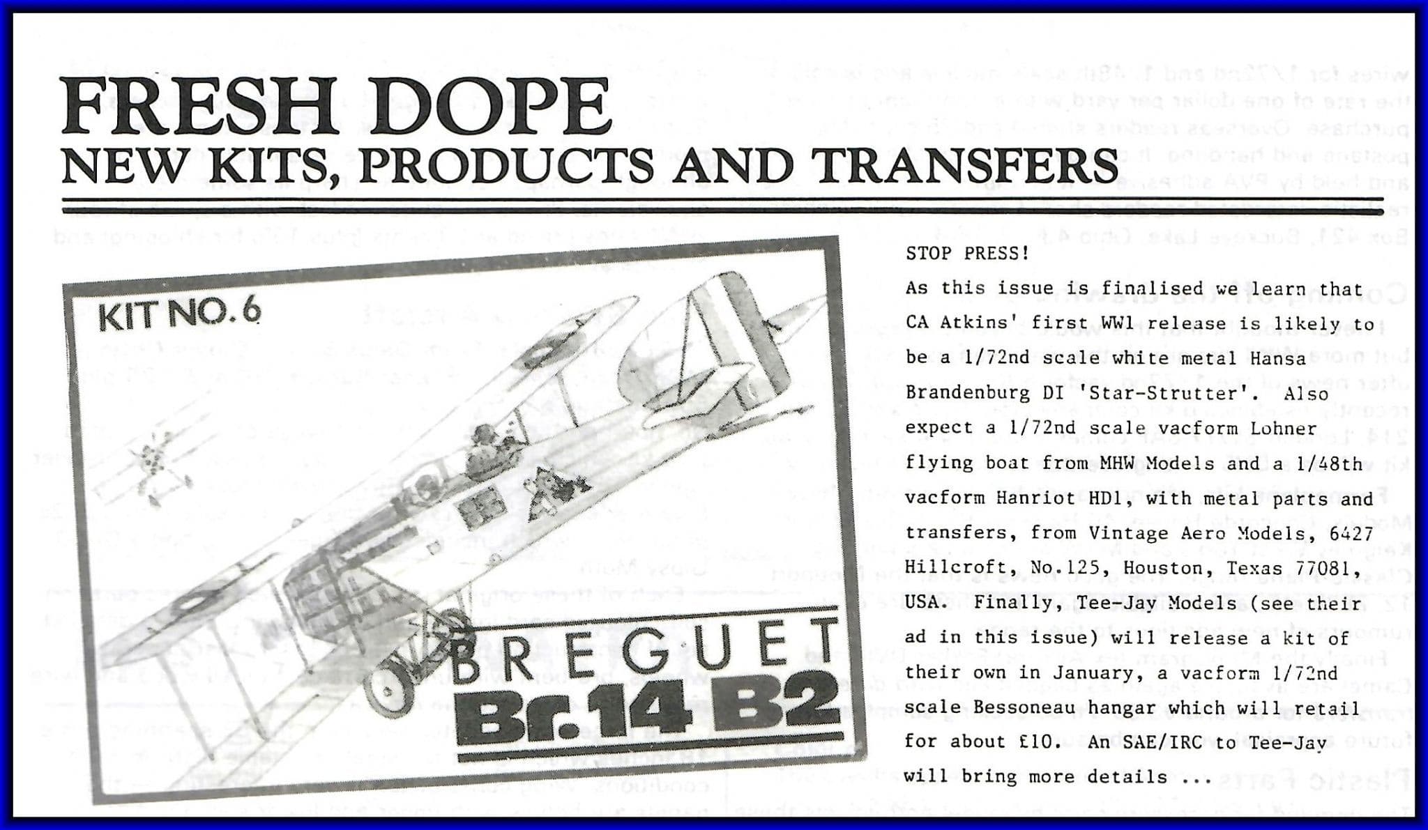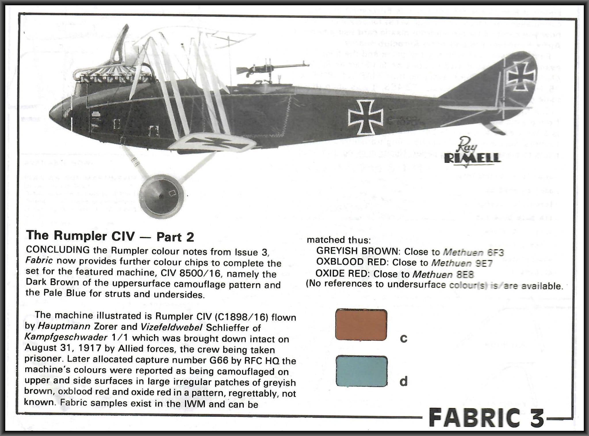 Another one for the true collector. This is the second issue of the original WIND-SOCK ,published 1985 and contains special DH4 features: a semi-scratched Rumpler C.IV plus paint chips; British RE7 canvas hangar plans and modelling notes plus kit,book and product reviews.